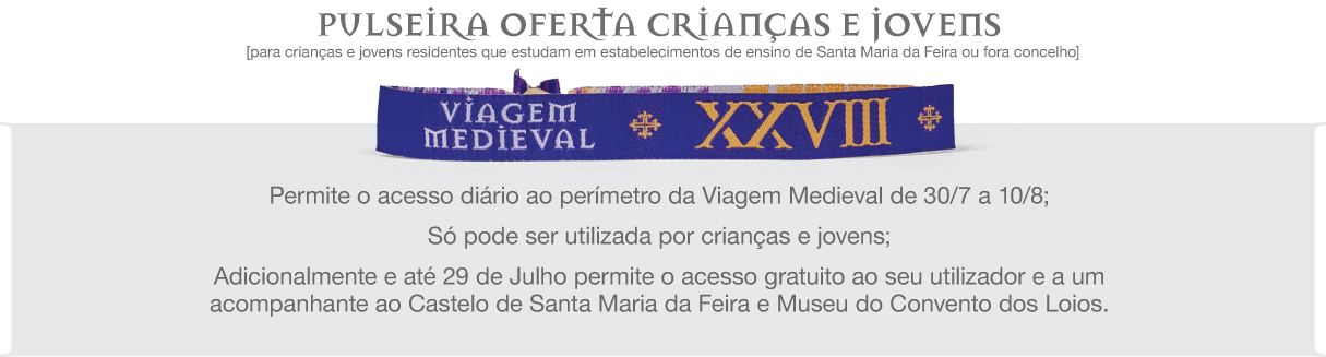 › Condições de usufruto das entradas gratuitas da Pulseira Real para as áreas temáticas Castelo d’ El Rei, Torneio Medieval da tarde e o Discurso do Rei: